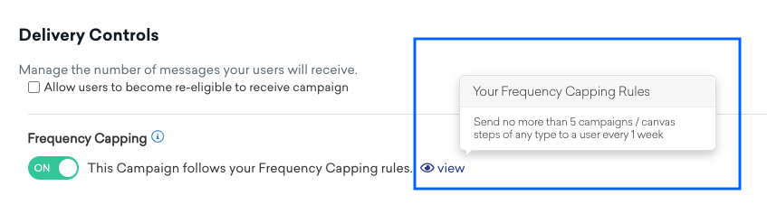 - The Frequency Capping rules will apply by default unless you toggle the switch to OFF