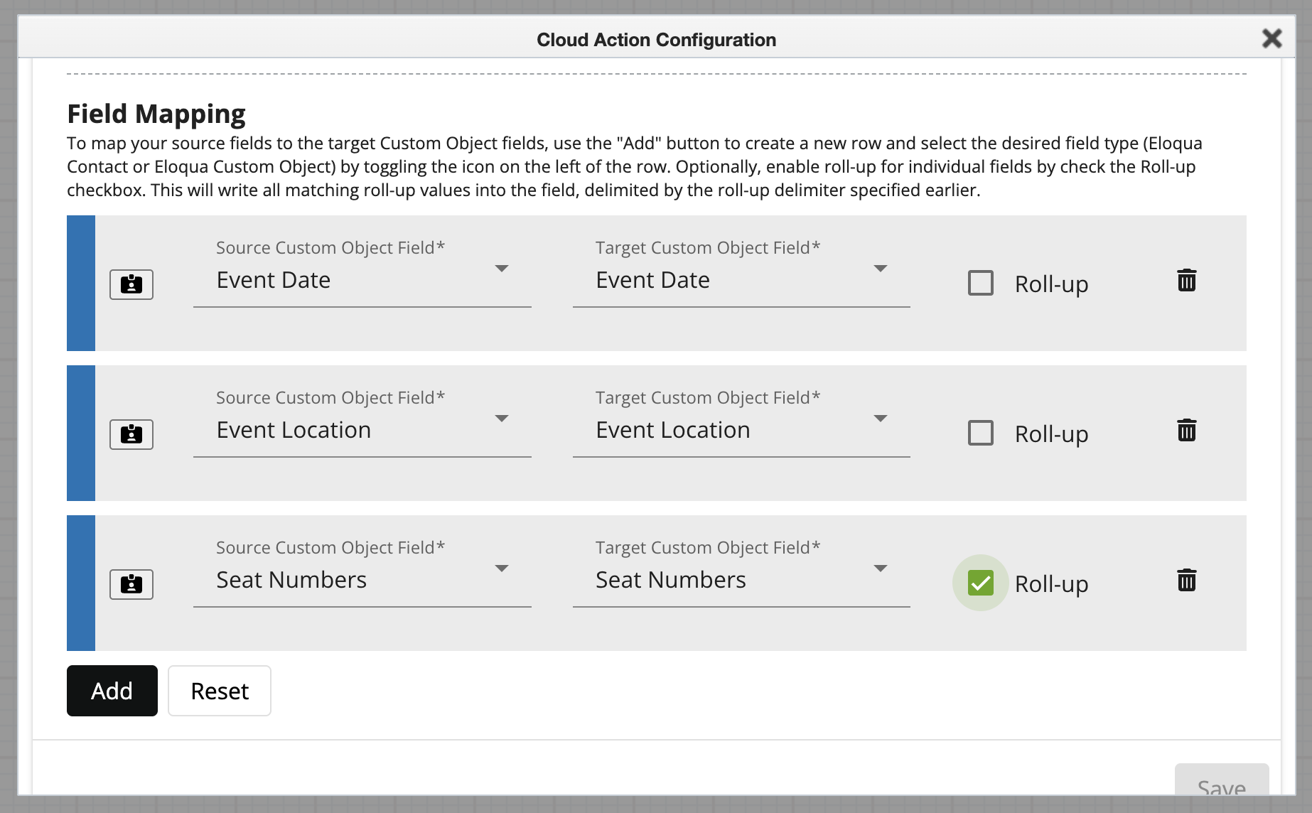 The beauty of Custom Objects is that you can have multiple records with the same email address that qualify to enter your Campaign, but you don’t want to send multiple emails or SMS messages. Using the Roll-up and Roll-up Grouping lets you precisely control which CDO records to include in a single email. If you wish to send a single email per contact with data for all of their associated CDO records, you might roll up by the contact’s email address. Alternatively, if you wish to send 1 or multiple emails to the same contact, such as a separate email for each of the contact’s orders, you might roll up by an order ID.